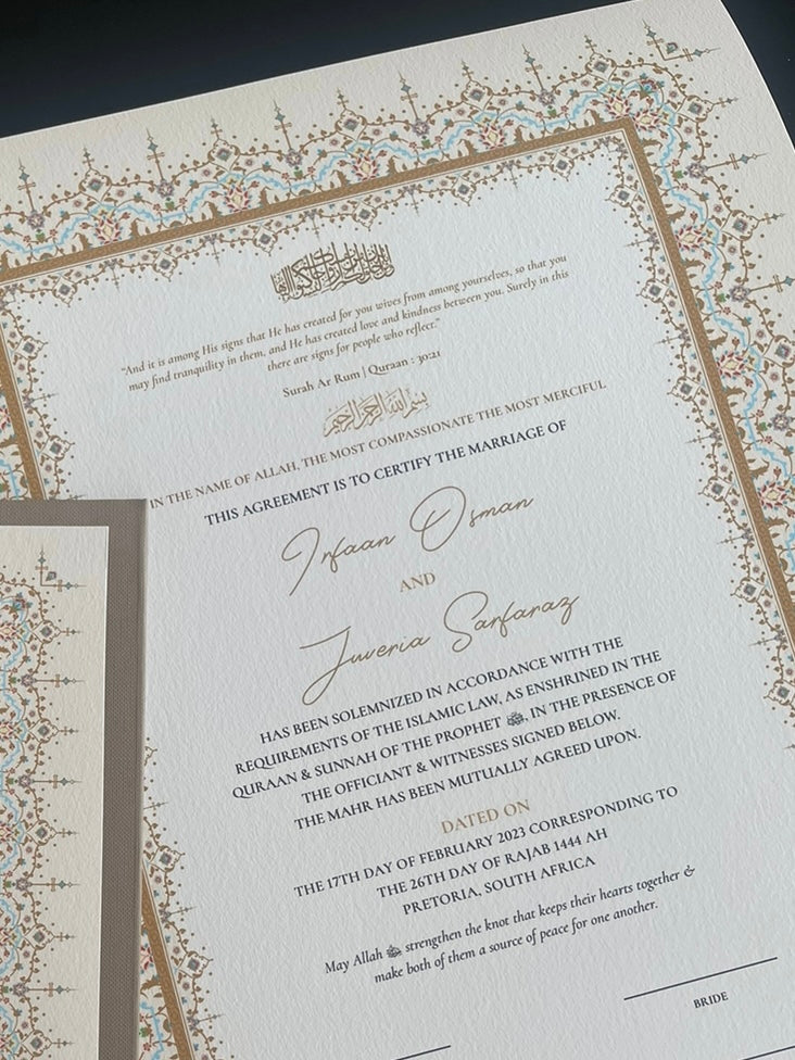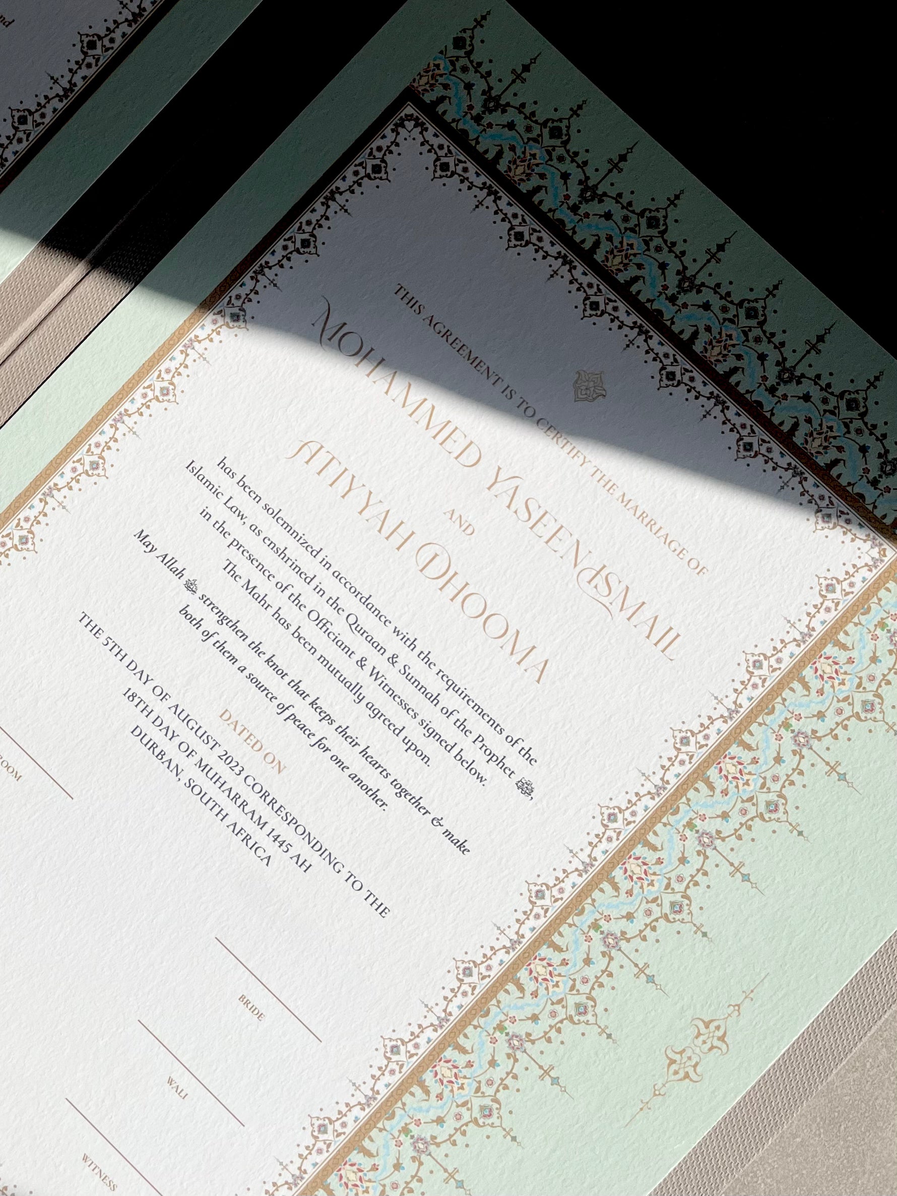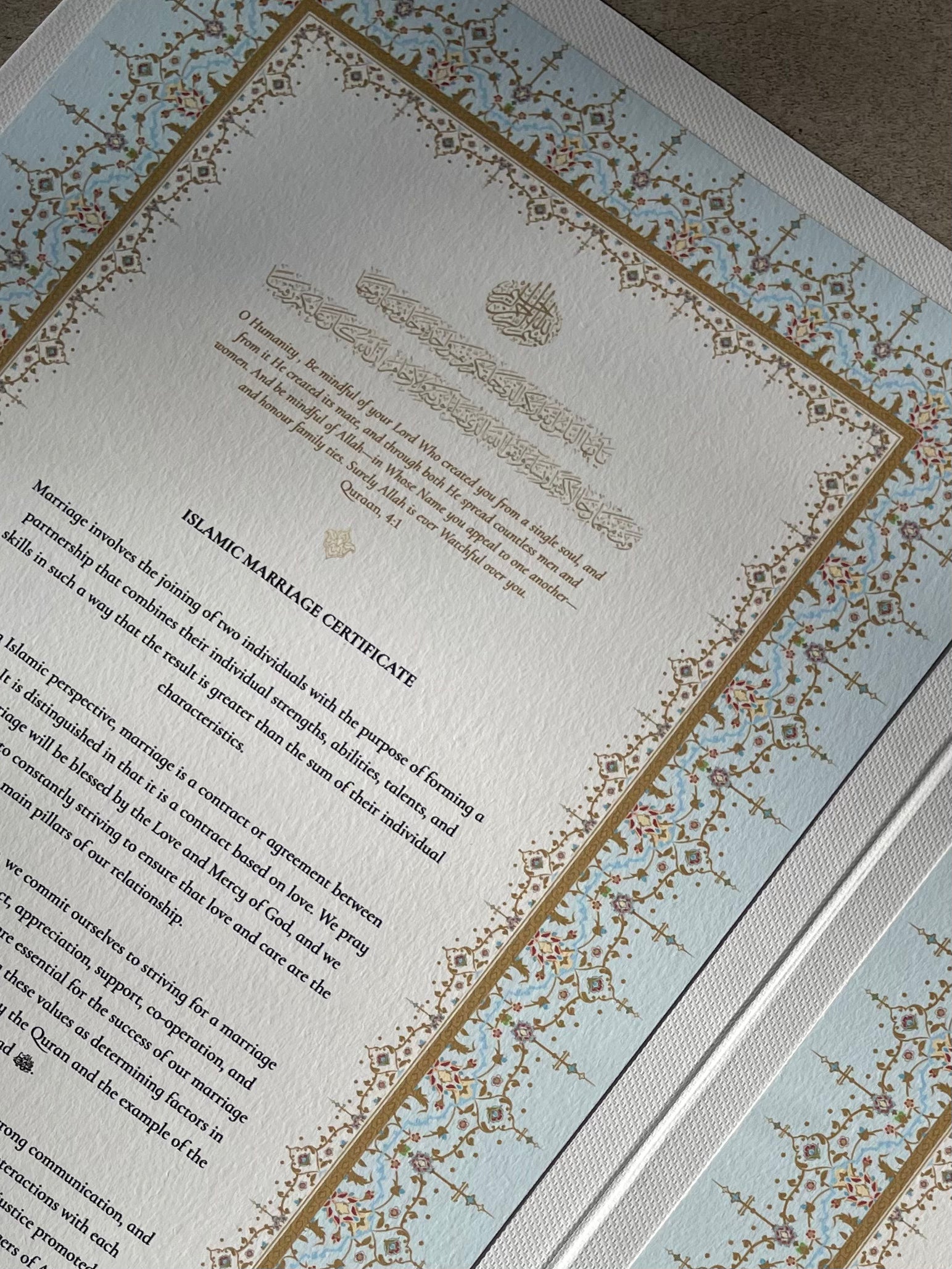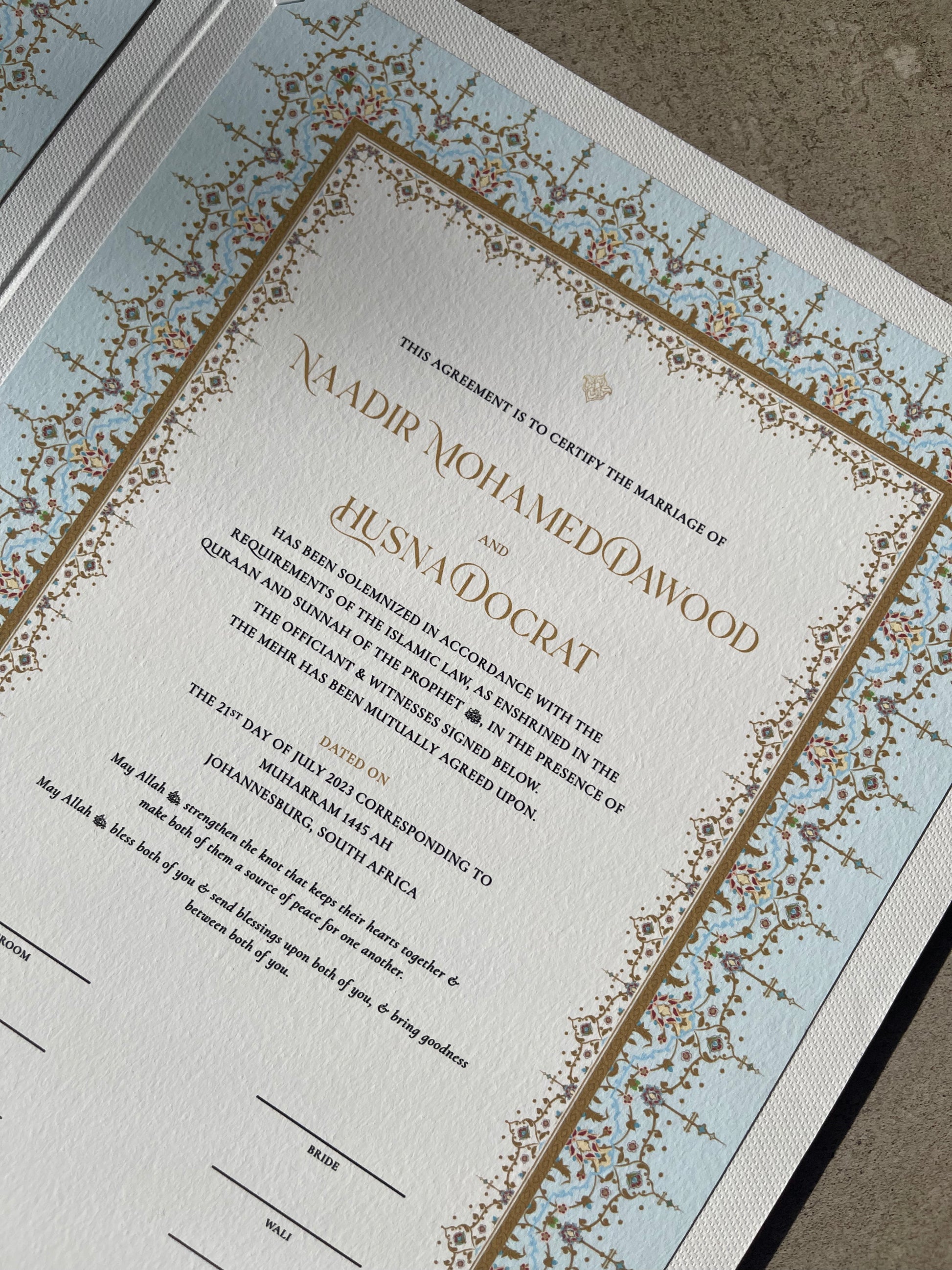 Shop your folder colour in the 'Nikaah Certificates and folders' tab before checking out.